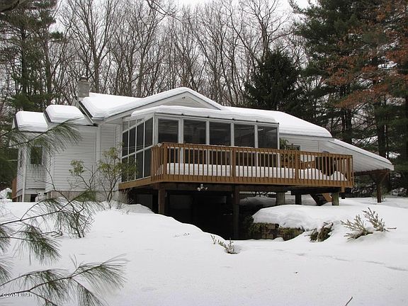 AFFORDABLE lake rights house on almost an acre in prestigious Spinnlers Point, motor boating Lake Wallenpaupack. Year round house with large kitchen, living room, sun room, hardwood floors, 2 bedrooms, 1 bath, full basement, car port, front and back decks. Large level grassy yard surrounded by mature privacy trees. Lots of parking. Bring your boats and 4-wheelers! Boat slip available! Close to town and major metro areas. . . . Hurry, won't last!