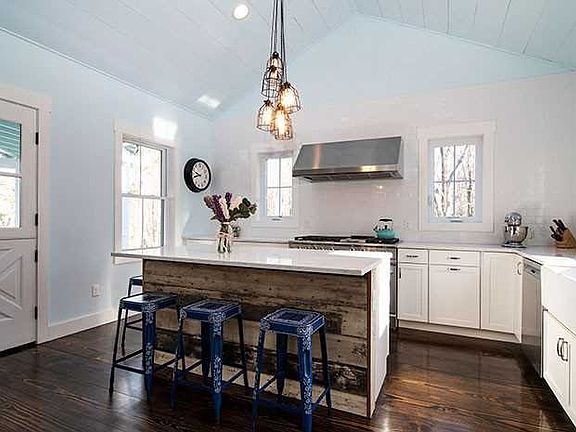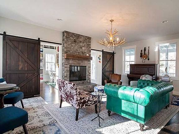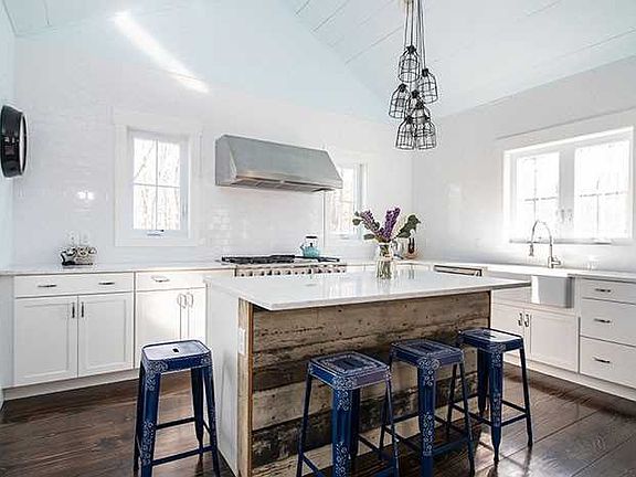 This custom built stylish Colonial-style farmhouse is absolutely turnkey, perfectly combining contemporary finishes with organic materials and rustic design. High ceilings, a bluestone fireplace with reclaimed wood mantle, sliding barn doors, decorative organic wood, and ample sunlight are some of the details that give this home a cozy yet abundant feeling. The main floor flows seamlessly from kitchen to dining room, living room, and study/den. The powder room and mud room/pantry area complete the first floor. The second floor contains the master bedroom with en suite bathroom and private deck, two generously-sized bedrooms, and a second full bathroom. The fully finished lower level offers natural light with extra rooms, a third full bathroom, and storage. The covered back deck has a circular dining nook and is generous enough to house several sitting areas. The 6.3 acre property is close to Rhinebeck Village and offers a combination of both cleared and wooded land, a raised bed vegetable garden, and fire pit.