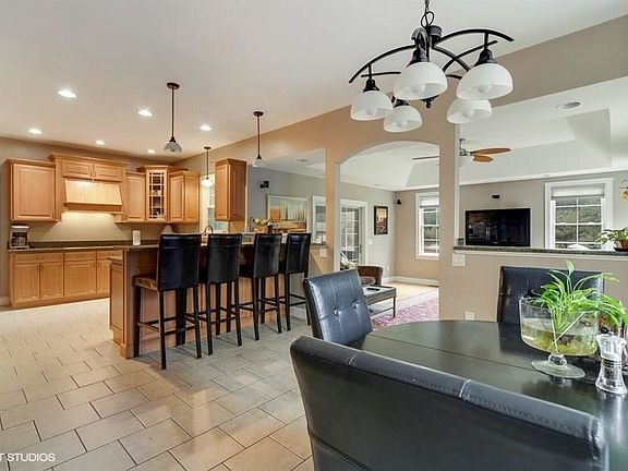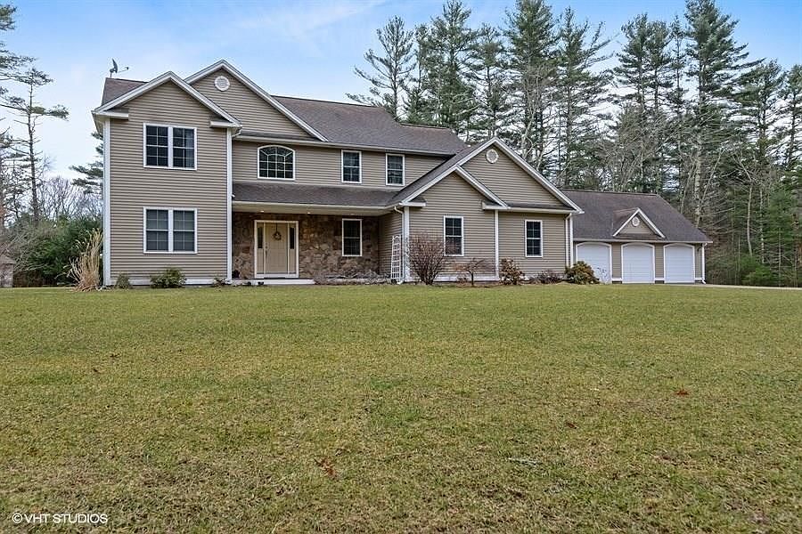 Quality and craftsmanship abound in this inviting colonial. The heart of the home is the amazing open kitchen , dining and family rooms.The granite counters , custom cabinets and built in stainless steel appliances are impressive. If using the formal dining room is not on the menu, there is a dining nook in the kitchen . A step down brings you in to the large family room with vaulted tray ceilings and a tile fireplace w/a pellet stove insert. Two additional rooms on the first floor are currently being used as home offices but could easily be used as guest space. A stylish half bath completes the main first floor . A large master suite with vaulted ceilings, large walk-in closet and master bath with custom tiled shower and separate tub and three more generous bedrooms , a laundry area conveniently located next to the full shared bath all located on the second floor . The full basement accessed through the attached 2 car garage has a high end hydro hot air furnace , updated plumbing filtration system is a perfect spot for storage .Wired for generator.In need of a work shop or extra garage space , there is a detached 3 car garage with a wood stove for heat. A studio in-law over the garage has a full bath, kitchenette and electric heat perfect for overflow guests or boomerang child .The screened rear porch located off of the dining and family rooms makes an ideal spot to lounge or dine . Do your grilling on the stamped concrete patio all on over 2 acres. Min. to 95 beaches