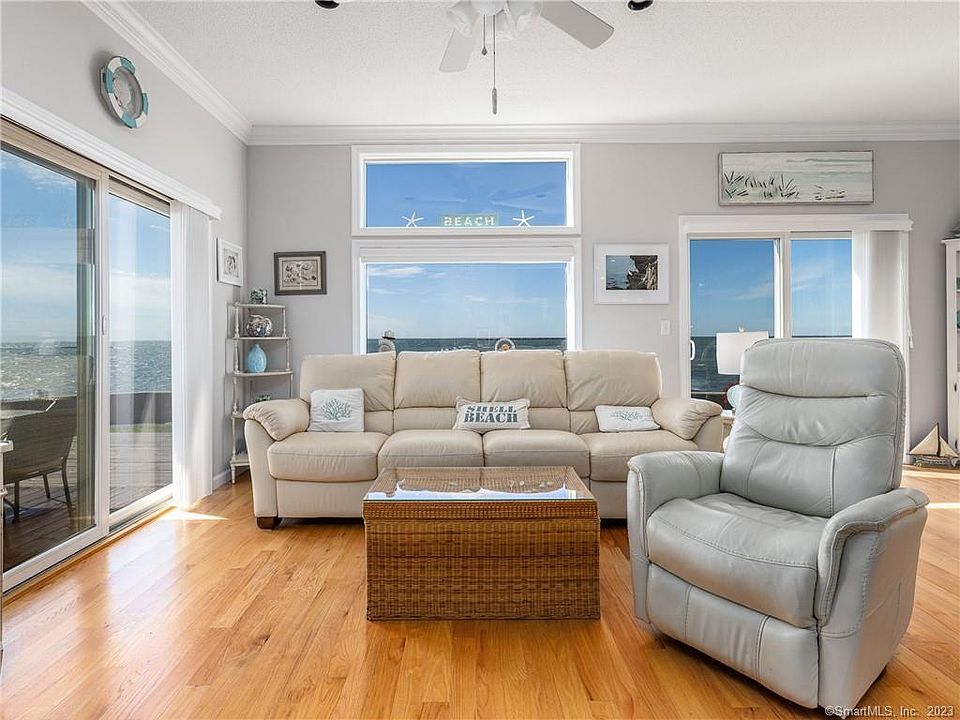 This is the one you have been waiting for! Ranch style, end unit, at one of East Haven's most desirable communities - SHELL BEACH! Wait until you see the views - it's truly like living on a houseboat! Unit is in beautiful condition, and it offers an open floorplan. Kitchen has stainless steel appliances, granite countertops, tiled backsplash, double ovens and gas cooktop. Enjoy your morning coffee sitting at the breakfast bar! Living room/dining room combination has sweeping views of Long Island sound, gas fireplace, sliders to deck(s) and gleaming hardwood floors! Two bedrooms - Primary bedroom has remodeled full bath and slider to deck. Additional full bath in hallway is also in beautiful condition. Complex has a heated in ground pool and club house for you to enjoy. Conveniently located to downtown New Haven and Tweed New Haven airport - which offers flights from Avelo airlines! There is nothing to do but move in, relax and enjoy the views! This will not last, ranch style units rarely come up for sale in this complex....schedule your showing today!