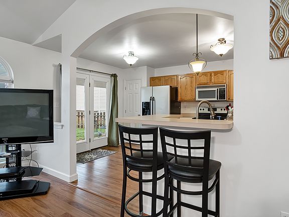 Don't miss out on this move-in ready home in the Diamond Pointe Community! This 3 bed, 2 bath ranch home includes main floor laundry, a light bright floorplan with arched openings and vaulted ceilings, beautiful laminate flooring and an eat-in kitchen with stainless steel appliances. The breakfast room door leads you out onto the covered patio and fenced in back yard that is perfect for entertaining family and friends as well as hosting weekend BBQ's. Relax in the spacious great room in front of the wood burning fireplace, and don't forget about the arched transoms that let in tons of natural light! The master suite is sure to impress with its soaring vault, double vanities and separate tub and shower. This home boasts tons of curb appeal with a side entry 2-car garage, and beautiful brick on the front elevation. This community just minutes from all your shopping/dining/entertainment needs, and all major highways.