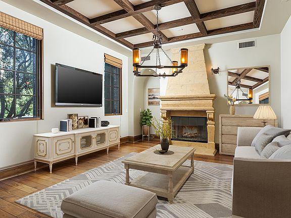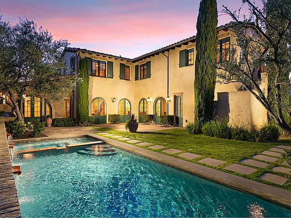 Feast your eyes on a one-of-a-kind custom Tuscan villa plucked right out of the Italian countryside and into the exclusive, guard-gated community of Covenant Hills. This Oatman Architects/David-Michael Designs estate boasts an intricate stone entryway adorned with mature olive trees, offering a breathtaking presence from its advantageous corner lot. The nearly 6000 SF floor plan features custom hand-distressed walnut floors and travertine throughout, old-stone engineered casings adorning the various entryways, and custom designed wooden ceiling beams. The office/wet bar in addition to the great room feature custom-stained alder wood wainscoting and built-in shelving, a further testament to the quality materials this home boasts. The exquisite dining room with a built-in wine cellar leads through an expansive butler's pantry into the kitchen, which features high quality granite countertops and multiple high end Subzero-Wolf appliances as well as two ovens, two dishwashers, and a warming drawer. Exiting through multiple french doors, a stunning in-ground pool and spa awaits, featuring multiple waterfalls and an adjacent fire pit. Wrought-iron railings lead you upstairs where you'll pass a large laundry and four large bedrooms each with their own en-suite bathroom. The end of the hallway boasts the impressive master bedroom and bath complete with hillside views, custom alder wood built-ins, built in mini-fridge, walk-in closet, and one of three fire places. Welcome home.