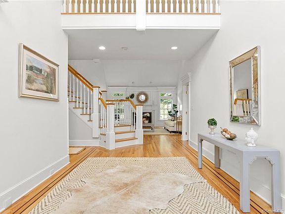 Best location in Easton! Awesome style, quality and craftsmanship make this gorgeous property a standout. Underground utilities; natural gas. Open, flowing layout, superior floor plan. Double level foyer with interior balcony, 2 beautiful staircases. Oversized true-light double-hung windows with transoms. Welcoming living room with vaulted ceiling. Dining room features tray ceiling, panel moldings and butler's pantry with dishwasher. Stunning kitchen/family room has extensive custom cherrywood cabinets, nickel hardware. Granite breakfast bar, desk area and informal dining with window wall overlooking pretty backyard. Viking 6-burner cooktop, double Thermador ovens (regular/convection), double sinks, LG refrigerator. Superb detail work throughout home includes main level walnut floor inlay; deep window, door, crown and base moldings. Wonderful for parties: house accommodates 100 guests without feeling crowded. Cozy areas in kitchen/family room open onto patio and deck. Sound system. Romantic master suite with his/her walk-in closets, pocket doors to octagonal lounge/office. Second level bedroom could be alternate master. Main level playroom/office. 2 half baths on main level. Spacious windowed laundry room has utility sink. High-ceilinged basement includes huge play/exercise areas. Hot/cold water in garage. Incredible location with quick access to Merritt, walk to SHU, Discovery Museum, park, fishing/hiking, shops and restaurants. Private surrounding with trees, open space.