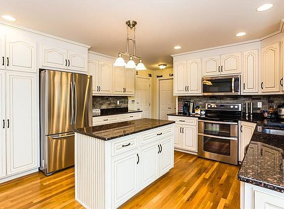 Fabulous Farmhouse Style Colonial with welcoming front porch features a beautiful Master Bedroom suite with amazing 18x10 walk-in closet,15x11 sitting room and master bath w/hydro tub, stall shower & double vanity sink. Three more generous sized bedrooms and full bath complete the upper level. An open floor plan on the main level with gleaming hardwood floors is perfect for entertaining family and friends. A fantastic Recreation room on the lower level walkout features a bay window, wet bar, full bath, a 15x15 unfinished storage room and 20x13 mechanical room with workshop. Enjoy the private outdoor space on the inviting paver patio and firepit area with steps to the heated IG salt water pool. Nothing to do but enjoy your Staycation home!