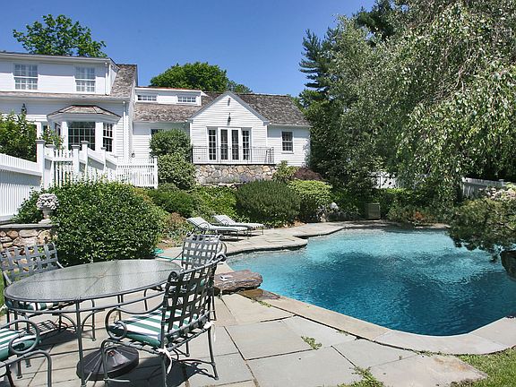 Exquisitely renovated 1940'S connecticut country house on rolling land offers unobstructed views of ox ridge hunt club. Multi-Level terraces lead down to free form pool. Professionally landscaped grounds andAmp; fieldstone walls. His andAmp; hers master baths. Playroom over garage. Wine cellar.