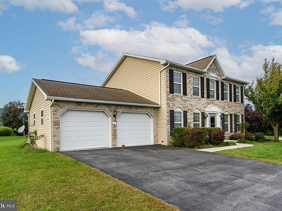 4 bedrooms, 2.5 bathrooms, brick-fronted, and situated in a cul-de-sac. a two-car garage, a maple kitchen with an island and a breakfast nook, a family room with a gas fireplace, a master suite with a double vanity and a whirlpool, and gas heat and central air. sizable backyard that overlooks mountain