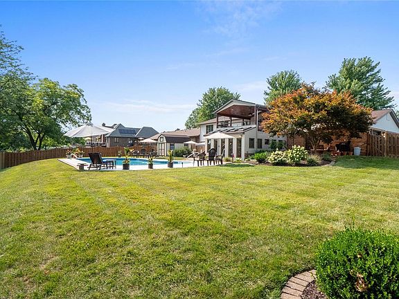 This stunning 3-bedroom, 3-bathroom home greats you with warmth & charm, starting with the hardwood floors & the elegance of solid oak doors & trim. The kitchen features cherry cabinets with built-in storage options, a double oven, under-cabinet & lower lighting, & exquisite granite countertops.The master bedroom features a spacious California closet. The lower level offers an open concept living space complete with bar & cozy fireplace. A bonus room with built-in bookshelves & desk provides a perfect spot for a home office. Enjoy the tranquility of the 3-seasons room with heated floors, that leads out to your patio & heated in ground pool. Relax under the retractable awnings on either of the two patios, or on your upper level covered patio while listening to the soothing sounds of the water feature nearby. This home also boasts a versatile three-car garage, with one stall transformed into a dedicated workshop. Be sure to come see all the features this home has to offer.