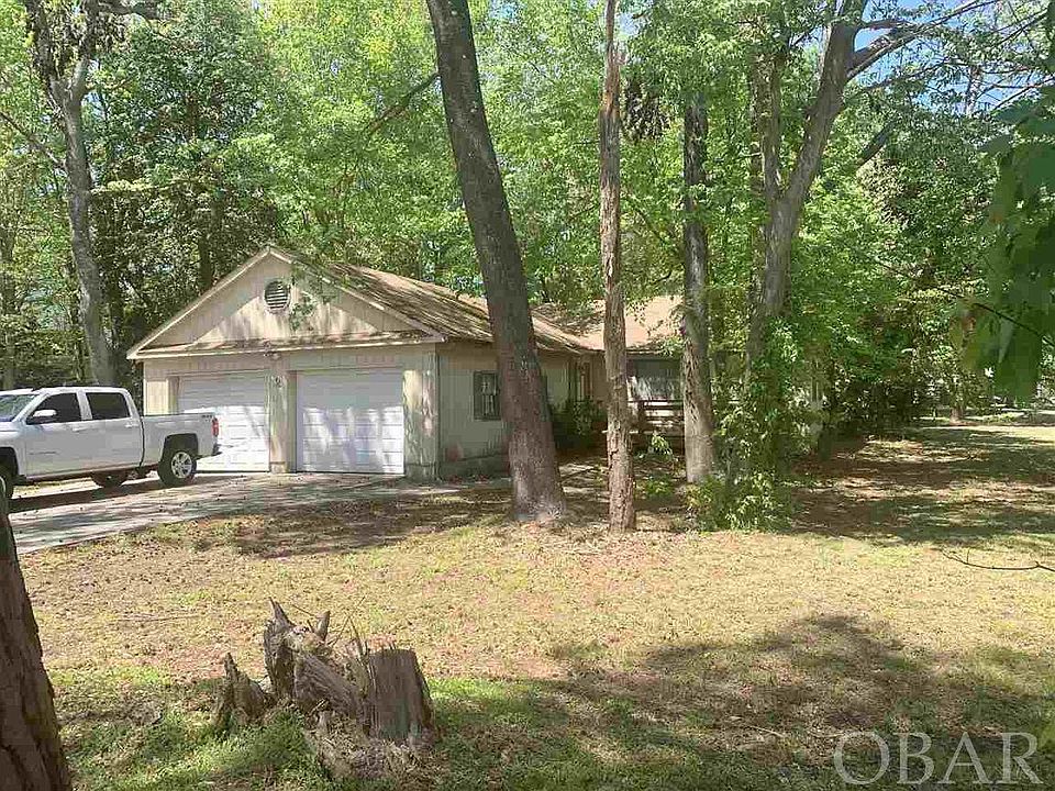 3 BEDROOM + OFFICE/STUDY HOME IN SOUTHERN SHORES. Don't let the outside deter you.. It needs some TLC but this home has great interior and floor plan. Large dining room and open concept kitchen. Cathedral ceilings in the great room. Features two master bedrooms and two additional bedrooms that share a full bath. Tons of possibilities with large rooms and one level living. HVAC is zoned, wood burning fireplace, pantry, appliances convey, 2-CAR garage. Super convenient location with almost 2,000 sq. ft.. This diamond in the rough is a great opportunity for the right buyer to build some solid equity. Large corner lot (+18,000 sf.ft.).EXLUSIONS- Wall mounted TVs and Stereos DO NOT CONVEY. ***Home Warranty Provided to Buyer at Closing**