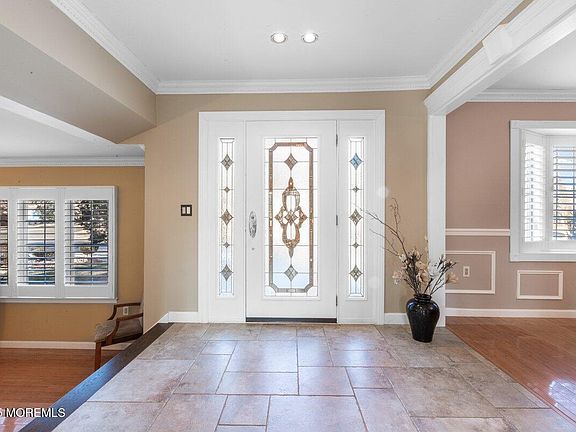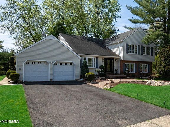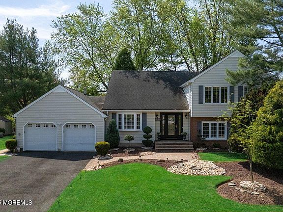 Welcome to this stunning, meticulously maintained Colonial located in The Prestigious Paddock Club in the heart of Marlboro Township. The elegant exterior, complete with manicured landscaping, paver walkway, and a two-car garage, sets the tone for the beauty that awaits inside. Step inside to discover a grand foyer and tasteful tile flooring. The adjacent living and dining areas are filled with natural light, classic wainscoting, and crown molding that exude sophistication. The spacious family room features a cozy wood-burning fireplace, recessed lighting, and sliders leading to the private backyard. A great room addition with cherry wood floors and a private entrance provides a versatile space with numerous options. The renovated eat-in kitchen is a chef's dream, showcasing cherry wood cabinets, stainless steel appliances, ceramic backsplash, granite counters, and recessed lighting. Beautiful bamboo wood flooring flows throughout, complemented by interior shutters that add a touch of modern and classic charm. Upstairs, the primary suite is a luxurious retreat, offering three walk-in closets and a spa-like ensuite bath with dual sinks, a jetted tub, and a glass-enclosed shower. The generously sized additional bedrooms provide comfort for family and guests. This home's thoughtful layout and high-end finishes provide style and functionality, making it a perfect choice for discerning buyers. The home also features a partial basement, a 2-car direct entry garage with epoxy flooring, a home generator and an expansive backyard with patio. Enjoy the community pool and easy access to all major highways, shopping, and NYC Transportation. Top-rated Marlboro Township school system. A PERFECT 10!