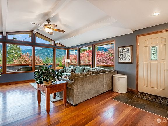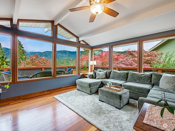 Come see this updated home in a quiet neighborhood located in Gate 1 just a short walk to the marina, parks, dining, rec center and golf course clubhouse. The main floor includes the primary suite, radiant heated floors in the kitchen and primary bath, Brazilian Cherry hardwood floors and a chef’s kitchen with island seating for four. Enjoy large windows with 270-degree views of the mountains, Sudden Valley golf course and Lake Whatcom. Walk outside to the large wrap-around Trex deck with a natural gas grill connection, outdoor seating/dining, beautiful landscaping and fenced-in yard. The fully finished basement includes a large rec room, surround-sound wired theatre room, and a bedroom/office with a Murphy bed/desk combo unit.