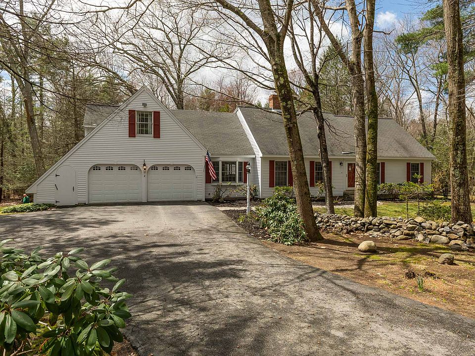Beautiful location! Privately set in the woods, yet a short drive to all amenities, including Rye & North Hampton beaches. Walking trails are located across the street. This gracious 3,544 sq ft home has an abundance of space! Lovely hardwood floors run throughout the 1st floor. The formal living room has crown molding, wood-burning fireplace, recessed lighting over the mantel, built-in bookshelves and windows overlooking the front yard. The kitchen opens up to a large family room of rustic charm with wood beams and a brick fireplace, filled with natural light and stunning views of nature right in the backyard. From here you can access the expansive deck to watch deer pass through the woods and hear the occasional owl hoot at night. A small pond rests on the edge of the property completing this picturesque setting. 1st floor Master Suite with a large walk-in closet, slider to back deck, full bath, and office or workout room. The 2nd floor has a second Master Suite with double closets and a ¾ bath, 2 additional bedrooms and a full bath. There is also a large bonus room accessed by an elegant curved stairwell - perfect for use as an office, playroom or media room. This wonderful home sits on a 3.9 acre lot where you can enjoy nature and wildlife from any of your 3 backyard decks. This home is move-in ready with some recent updates that include a brand new metal shingled roof, some carpeting upstairs, and new lighting fixtures. Seller is a licensed realtor.