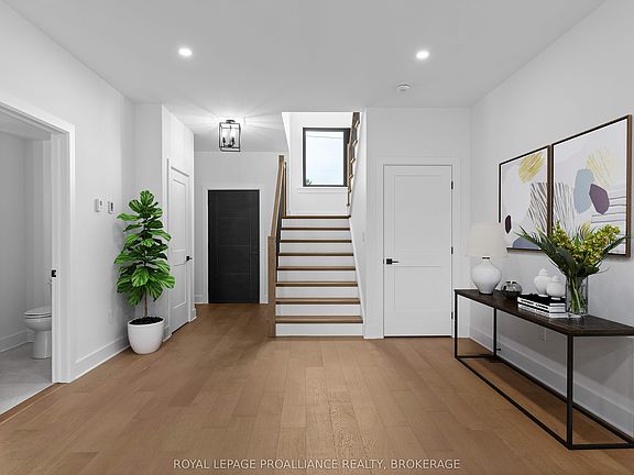 A rare opportunity to own a showcase home by Concord Homes. Welcome to this stunning 2500 sq.ft. 2 storey residence, crafted by one of Kingston's finest builders. Located on a quiet street in Amherstview, this custom-built home offers quality finishes and exceptional craftmanship throughout. Open concept main floor featuring a modern kitchen with a central island, quartz countertop, walk-in pantry and stylish cabinetry. Patio doors to composite deck. Seamless flow to the dining area and inviting family room. Upstairs, a hardwood staircase leads to 4 generous sized bedrooms including a spacious primary suite complete with a wood feature wall, walk-in closet and a sleek ensuite bathroom with a glass shower. The upper-level laundry room adds convenience with built-in cabinetry. Situated just steps from schools, parks and shopping, this home offers the perfect blend of style, comfort and location.