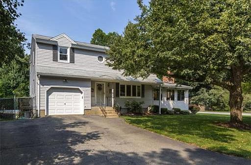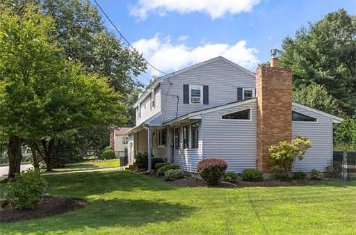 Wonderful Colonial on Corner Lot, in Desirable Neighborhood Setting, within Walking Distance of several Parcels of Protected Land & Community Playground! Highlights include open-concept floor plan, a beautifully-updated Kitchen & phenomenal Family Room. Spacious LR with bow window & oak flooring leads to entertainment-size Kitchen: Granite counters, tile flooring, gas cooktop, SS appliances (gas stove, Bosch dishwasher, double wall ovens / one is convection). Kitchen opens to DR, which in turn steps down to fabulous FR. It's easy to understand why this is a favorite spot in the house! Gorgeous stone FP with gas insert & thermostat, built-ins & shelves, vaulted ceilings with beams and tongue & groove wood, track lighting & ceiling fan, lots of windows, skylights & sliders to back yard – what's not to love?!? 2nd floor features 4 BRs, all with ceiling fans, & a full Bath with jetted tub. MBR has walk-in closet & 2nd closet. Full basement, 20x40 IG pool, Town water, sewer & natural gas.