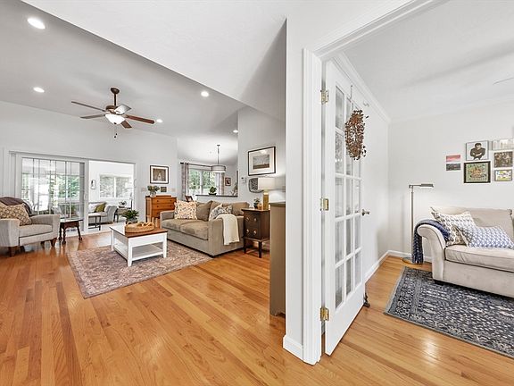 Open house canceled! Offer accepted! Custom-built ranch offers the luxury of one-level living and boasts hardwood flooring complemented by soaring ceilings. The spacious living room features newly added custom built-ins & a cozy gas fireplace, seamlessly connecting to a galley-style kitchen w/ stainless steel appliances, granite countertops, & a convenient pantry. The home includes 3 generously sized bedrooms, w/ the main bedroom offering an en suite bath for your comfort. Additionally, there's a bonus office off the foyer and a four season sunroom to enjoy. Modern amenities include a whole-house generator, double-paned windows, and central air. A standout feature of this property is the impressive 4-car garage with 15ft ceilings, perfect for all your storage needs or a workshop. Outside, relax on the composite deck overlooking the professionally landscaped yard. The basement is a blank canvas offering additional space for storage or finishing it to your liking. Welcome home!