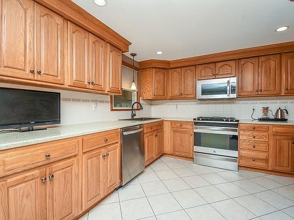 Located in the sought after Pines neighborhood, nothing to do but move right in! This home has been impeccably cared for and maintained inside and out. The main level features hardwood floors throughout with a spacious, cabinet packed kitchen including all upgraded stainless steel appliances. The lower level is completely finished and includes a family room with wood burning stove, a third bedroom with walk-in closet and 3/4 bathroom. The laundry room has plenty of storage/pantry space including exterior access and interior fire wood storage. The over sized 2 car garage boasts 12' ceilings and has it's own heat zone. Perfectly manicured landscaping and garden area along with 2 decks, a patio area and fire pit make the outdoor space perfect for entertaining or relaxing.