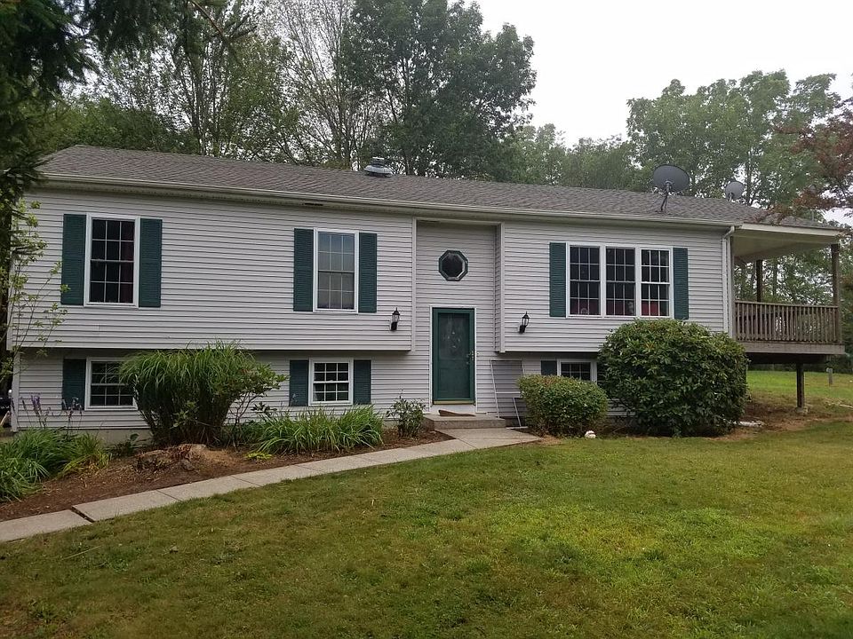 A beautiful home in the quiet town of Ledyard. The house sits on almost 2 acres with a large yard. During season you will be able pick raspberries and peaches. You can also sit on the wrap around porch and enjoy the peace and quiet. There is a large shed in the backyard. Fantastic school district and minutes to Groton submarine base, I95, local tourist attractions. Home is a raised ranch 1330 sqft upstairs(3 br, 2 ba, large kitchen, dining room and family room). Fully finished basement doubles the square footage (living room, 1 br, 3/4 ba, laundry and large office/home gym/ storage). Additional storage space available in the climate controlled attic. Tenant is responsible for electric and propane which is used for heating. Home is on a well and septic tank as well as town trash.