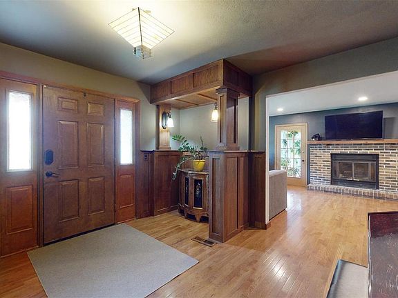 A Tudor-style home situated on a spacious and private lot. This residence, remodeled in 2010, with more recent updates made boasts custom details, showcasing a blend of elegance and charm. As you enter through the foyer, you are greeted by the allure of oak wainscoting and an inviting entry niche, setting the tone for the craftsmanship found within. Solid oak flooring can be found on the main level of this home. The kitchen includes walnut cabinets and concrete countertops. The expansive living room leaves a lasting impression with its bay window, recessed lighting, and fireplace, providing a focal point for the room. The covered deck and light-filled sunroom offer tranquil views of the surrounding nature. Additionally, the main level includes a 4th bedroom, that was previously a formal dining room. Continuing upstairs, you will find 3 generously sized bedrooms. The master bath exudes style with its oversized shower, pecan cabinets, double sinks, and a granite counter. Welcome home! Additional Rooms: Sun Room