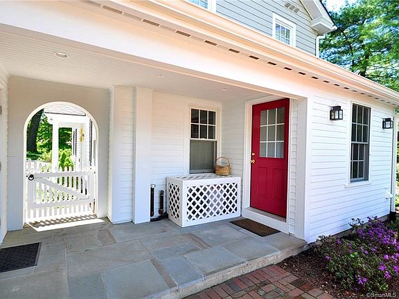 H & H Mason Cabinet Shop, 1896 Originally a cabinet shop, this historic gem was relocated in 1924 from Simsbury to its present location in the heart of Farmington Village. Its integrity has been masterfully preserved, while inspired updates blend modern living with colonial charm. Recently owners have updated with new windows, oil burner, oil tank, patio and more. See list attached. Natural light, from new the windows, streams throughout, highlighting beams, hardwood floors and other period details. An updated kitchen features stone countertops and stainless appliances, along with a delightful, casual seating area accented by multiple windows overlooking the grounds. The flow from the charming dining room through the front hall to the living room, anchored by a generous hearth, ensures entertaining ease. Upstairs, the Master Bedroom suite is sunny and generous with a spa bath including a steam shower and walk-in closets. All guest bedrooms are ample with an updated bath. The original workbench in the basement, amid the cobblestone foundation, provides an historic counterpoint to all new mechanics. Outside, a brick patio and thoughtful fence offer both privacy and views of villagers gardens. Gorgeous perennial plantings ensure maintenance-free upkeep. The renovated, heated, two-car garage boasts an enviable retreat on the second floor; a large sitting room/bedroom with garden views and a full bath. Walk to the Farmington River Trail, Schools and town shops. Improvements by the current owners consists of: New windows throughout; New heated garage, studio above with full bath; New driveway drainage includes drainage for house gutters; New patio, perennial garden and privacy fence; New mudroom with area for washer & dryer; New covered breezeway to garage; New water heater, oil burner and oil tanks; Refinished hardwood floors throughout; Internet based alarm system & programmable thermostats; Flower window boxes; Wool stair carpet; Invisible fence around entire yard; master bath with steam shower.
