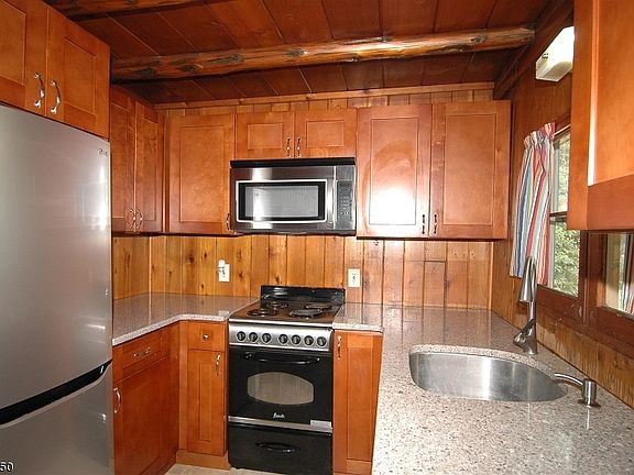 Live the Lake Dream here! Walking Distance to Lake, Beach & Dock. Log Home w/Exposed Log Beams for Rustic Charm plus Renovated Kitchen with New Cabinets, SS Appliances & New Countertops. Central Air. Home in Desirable Neighborhood offers 2 BRs, 1 Full Bath w/Tub Shower, Usable Loft, plus Enclosed Wraparound Sun Porch. 1-Car Garage. Fenced Yard. Interior Access to Basement. Public Water & Newer Septic. Wildwood Shores Membership offers choice of Beaches, Lake Access, Affordable Dock Space on Lake Hopatcong, NJ's Largest Recreational Lake. Swim, Boat, Ski, Fish...all within Walking Distance of your Front Door! Just One Hour to NYC!