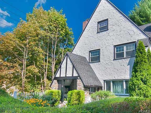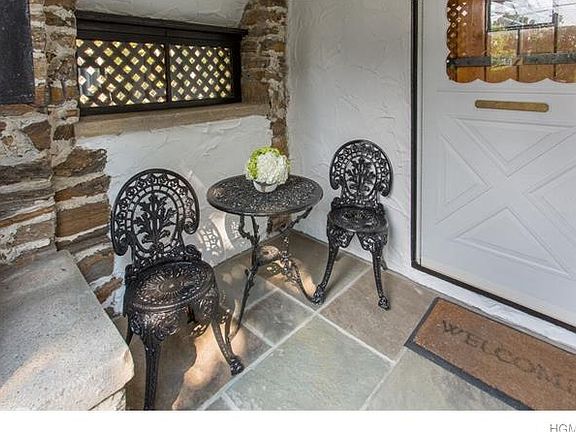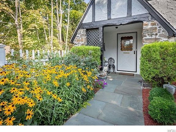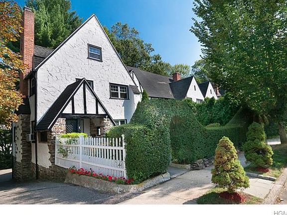 Semi-attached Tudor townhouse w/blue slate walkway leading to an English-style perennial garden w/covered porch sitting area. Inside features a Living Room w/gas fireplace, Dining Room w/built-in cabinets & door to a Romeo/Juliet balcony, bevel-etched custom picture windows in LR/DR; Kitchen. 2nd Fl has 3 Bedrooms & renovated full Bathroom w/linen closet. Hardwood floors on 1st/2nd. The 3rd fl offers a large bonus room w/lots of closets, custom-built bookcase w/window seat, pergo flooring & pulldown stairs leading to additional storage-wonderful space to use as a playroom or office. Lower level w/porcelain tiled floor, hall closet, renovated full Bathroom, laundry & utilities and back door that leads you to your multi-level yard with private stone patio, 1 car garage & addtl parking for 2-3 more cars. Located on a dead-end street w/easy walk to schools, Village shops, Pelham RR (less 1/2hr ride to NYC). Total acreage/size 32 x 128 per municipality. No Common charges.