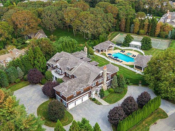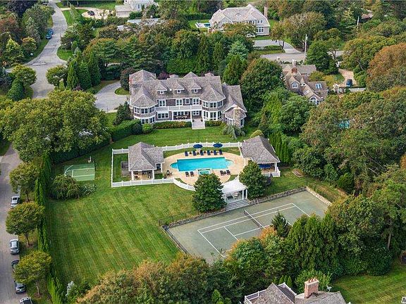 An expansive, private estate in the heart of the Village of Quogue offered for sale for the first time. There is nothing like this property in the Quogue "Forum," the estate section south of the highway with wide tree-lined streets and easy access to shops, restaurants, theater, beach, and golf courses. Situated on two acres fronting Quogue Street, this 9,788sf 9-bedroom property, built in 2006, is an all-inclusive compound with multiple high-end living and entertaining areas. Outdoor amenities include a sunken Har-Tru tennis court, wide lawns, and not one but two pool houses-fully-equipped with kitchen, bath and laundry-on either side of the Roman-stepped pool and the stone-walled jacuzzi spa. Inside, a grand foyer opens to a formal dining room with seating for 14, a bar room/lounge, and French doors leading out to a sunroom and outdoor decks. Down the great hall is a cozy study/TV room and an oversize living room with a stone fireplace, generous seating, and another 12-person dining area. Off the living room is a professional kitchen with 4 wall ovens, 2 refrigerators, multiple dishwashers, a wood-trimmed room butler's pantry and a walk-in food pantry. The main floor also features a luxurious first-floor master suite with dressing room, sitting room with fireplace, and spa bath. Two staircases, front and back, lead to the second floor and the two other primary bedroom suites, each with private sitting rooms and spa baths. The upper level also offers six more large, breezy bedrooms, a useable attic, and an outdoor balcony that runs the length of the house, overlooking the pool and tennis court. On the lower level you'll find an office, lounge, billiard room, gym, full bathroom with shower, and an immaculate engine room. Closer to New York City than the other Hamptons, outlined by bays and ocean for your boating pleasure, with the NYC bus a block away and Gabreski Airport close by for your private plane, 2 Pen Craig offers every amenity for modern Hamptons' living.
