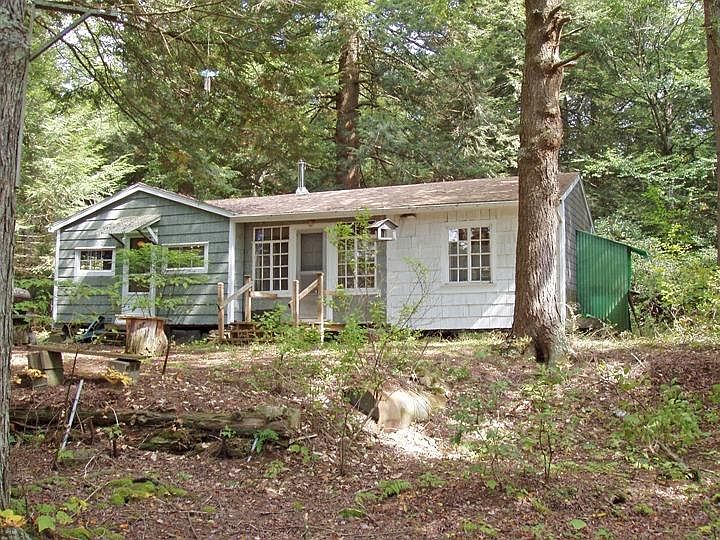 This is a very rustic, seasonal cabin with 83 feet of frontage on Perch Lake. It has electric, range, refrigerator, wood stove for heat and water to the kitchen sink that is pumped from the lake. There is an outhouse with electric and an outdoor shower with hot water. According to the tax records, the lot is 83' x 999. It widens out to approximately 300' in the rear. And, it is the last property on the road. It is being offered as is.