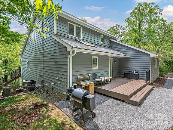 Discover the perfect blend of modern and rustic elegance in this stunning property, nestled on a private, expansive lot in Fairview just 12 minutes from downtown Asheville. High vaulted ceilings and abundant natural light welcome you into a space designed for luxurious comfort and style. This home features a magnificent oversized primary suite with a walk-out deck, complemented by a spacious primary bathroom with a jacuzzi tub. The large, fenced-in yard boasts a cozy fire pit area. Unwind in the all-seasons room, or enjoy the warmth of the gas fireplace. The basement offers ample space, including a potential workshop and home gym. With its premium location in Fairview, this home delivers both tranquility and convenience, making it a rare find. Experience mountain living at its finest.