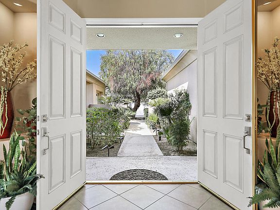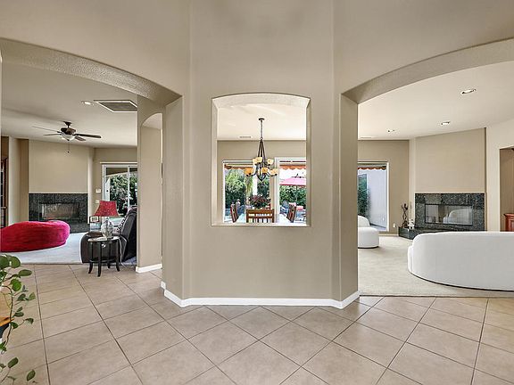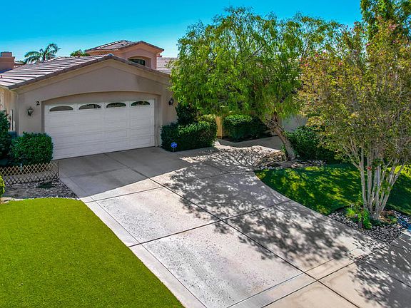 Gorgeous Desert Living at its best! Located in the prestigious gated community of Versailles in Rancho Mirage, directly across from Disney's Cotino Resort, a massive project of 600+ ACRES! Offering breathtaking panoramic mountain views. This stunning 3,075 sq. ft. home features 4 bedrooms and 3 bathrooms on a large .31 acre corner lot. This home features a grand foyer entrance to the formal living room with high vaulted ceilings, granite tile surrounding the first fireplace, and built-in bookshelves. Also featuring a gourmet kitchen with a center island, large walk-in pantry, and upgraded granite slab countertops. The oversized bedrooms have great separation for ultimate privacy. And lastly, a luxurious Primary bedroom with large a walk-in closet and remarkable primary bath with a marble encased tub, walk-in shower, and dual vanities. If you're ready for some fun the resort-style backyard features a pebble tech finish swimming pool, mid-sized spa, BBQ area, trees and covered patio. All located on a generous 13,503 square foot lot. Come experience the ultimate in desert living!!