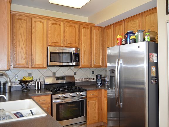 End unit townhome with so much space! 2 story great room is open, light & bright with wall of windows & FP that looks into the eat in kitchen w/newer SS appliances, 42" cabinets, backsplash + pantry. French drs to 1st flr den - being used as a bedroom. Gorgeous HW flr t/o 1st flr. Custom lighting t/o. Split staircase leads to mstr bdr w/private bath w/double sink vanity, soaker tub, sep shower & walk in closet w/custom built ins. 1st flr laundry. Basement is partially finished plus lots of storage. 2 car garage in cul-de-sac. Concrete patio looks out to mature trees & wetlands - no one behind you! You won't want to miss out on this fabulous townhome with so much to offer.