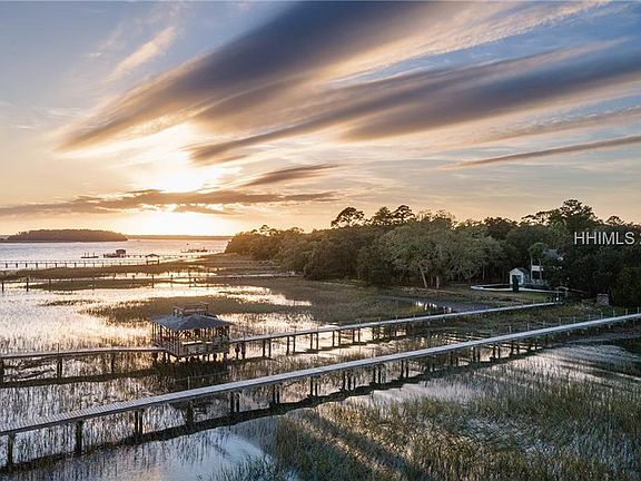 Astonishing custom built home w/ breathtaking views of the May River. Located on Pine Island, it offers HOA free living & easy golf cart ride to Old Town! The main living area boasts coffered ceilings,brick fireplace, & custom built-ins. Spacious kitchen w/ island, custom cabinetry, & carrara marble countertops. Huge laundry room w/fridge. Gorgeously designed master suite includes a walk-in shower & Bain Ultra air tub. Main level office space and 2nd story bonus room! The large screened in back porch truly encompasses the Lowcountry w/ its stunning woodwork & riverfront views.Sunsets from the viewing deck are life changing.Truly a dream home.