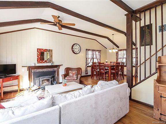 Charming, updated 3 BR, 2 bath colonial on the Danbury/Ridgefield town line. Nestled on 1.3 acres overlooking a picturesque, serene branch of Miry Brook, convenience and privacy make a perfect combination! A welcoming entry takes you a step down to an open layout featuring a wood stove and huge bay windows to admire the lovely views. Large dining room adjacent to the remodeled kitchen offers unique slate flooring, tile backsplash, SS appliances, wall ovens, and cooktop. HW flooring in LR, DR and all bedrooms. The upper level encompasses an enormous family room, cathedral ceiling and a wall of sliders to a spacious balcony/deck. The two full baths have been stylishly updated with designer tile and fixtures. Commuters take note: 5 mins to 84 and Rt. 7 for access down county, and 10 mins to MetroNorth trains. A quick drive to the mall, shops, great restaurants. Enjoy nature and check out the Charles Ives walking trail system at the end of the cul de sac. An excellent value, come take a look! Pictures coming soon.