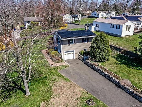 Great Location near schools, Candlewood Lake, Shopping and Hi-ways. Meticulously maintained home, with new solar panels, newer windows and newer rubber roof and new slider off dining room. bring the outside in with huge bow window in living room with a wall of newer casement windows in living room and dining room with new slider to back yard and beautiful hard wood floors. The natural light in the house is amazing. Kitchen with new granite counters, newer whirlpool range with great layout for the chef. bedroom level has beautiful hardwood floors, 3 bedrooms with ample closet space and a full bath w/laundry (note there is also another laundry hook up in basement. family room walks out to back yard, has partial bath and access to garage and basement. This is a true split level that has two unfinished sub-basements, dry basement system, radon in air system, generator hook up, oil heat and lots of storage. Please note sellers are packing, so there lots of boxes piled up. The house also has a nice 1 car garage with garage door opener sets up on knoll with level side yards and back yard with an immense amount of flowering shrubs. Leased new solar panels November 2021 buyer to assume lease.