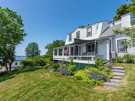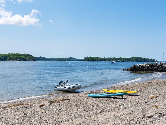 Waterfront cottage in the heart of town. Year-round house on Castine Harbor with a beach and separate guest cottage. Tucked in off Pleasant Street, steps away from shops, restaurants, and the town dock, this light-filled home sits on a hill providing water views from most rooms. Living space on three floors, three full baths, deck and patio. Main floor has a well-appointed kitchen, living room with a gas fireplace, dining room, den/office, full bath, sun room and deck. On the second floor is the primary bedroom with a step-out balcony, walk-in closet, and en suite bath with shower, jacuzzi tub, and a washer and dryer. Also on the second floor is a second bedroom with en suite bath. The walkout basement level has a extra refrigerator, additional extra-large capacity washer and dryer, workshop, storage, and a carpeted bonus room with windows, water views, and door to the garden. 18KW Whole house generator. Across the patio from the front door is a charming seasonal guest cottage with its own full bath and a deck with stunning water views (sleeps 4). An established three-season flower garden wraps around house and lawns. This location offers so many ways to experience all Castine has to offer: enjoy spectacular views of islands to the south and a dynamic working waterfront to the east; launch a kayak, paddle board or dinghy from the beach; walk to town and the Castine Golf, Tennis and Yacht Club.