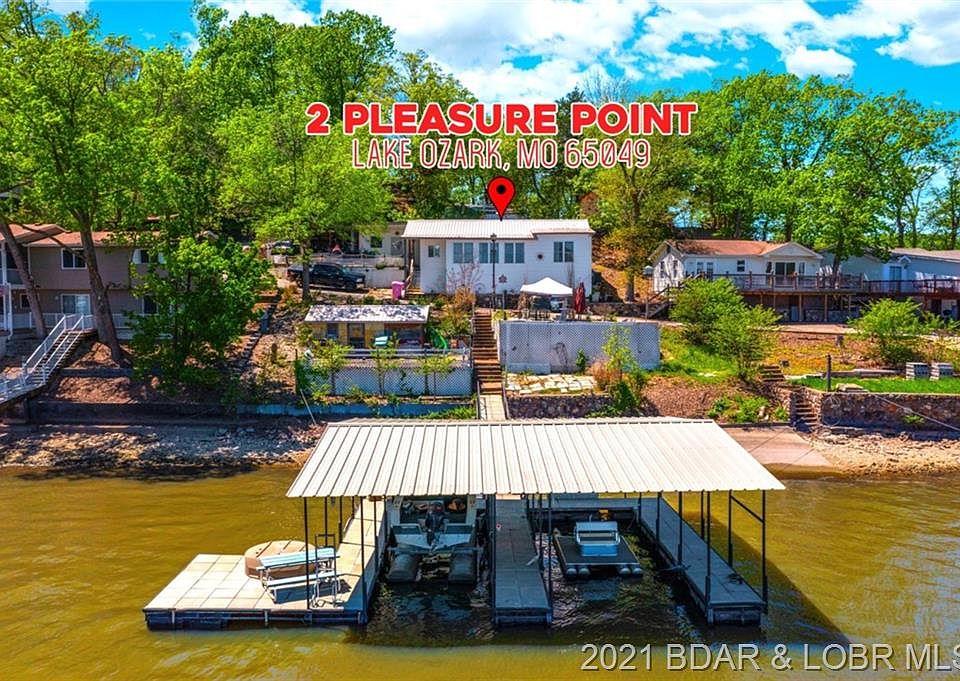 Lake Ozark on the 1/2 mile marker!! Never before on the market, your new home has an outstanding Main Channel view WITH cove protection and a 2-well dock with a swim platform. Enjoy the sunrises from your deck, with the Bagnell Dam in sight, or early morning fishing from the dock. Don't forget the investment potential! With close access to Hwy 54, the Strip, 3 bedrooms, 2 bathrooms, a game room, a carport, extra parking above, extra storage or tiki bar near the dock, and a swim platform on the dock; you can have your Lake dream AND vacation rental income.