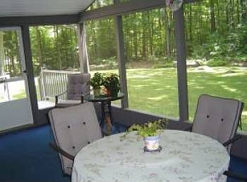 Home set in quiet neighborhood, serene setting with babbling brook in front and screened porch with deck overlooking large level back yard.. Lots of l