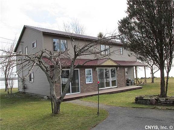 454 ft of waterfront on Big Bay Point, on Oneida Lake, this beautiful home on a peninsula has spectacular views of the lake, a large country kitchen with walk in pantry, large living room with a wood burning stove, 2 bedrooms (optional tv room and office), laundry room and full bath all on the first floor. The 2nd floor has 5 bedrooms, 4 of which are 12x12, & a 2nd full bath. The 5th bedroom upstairs is the master suite with a large walk in closet and finished full bath, cathedral ceiling with skylight and a hurricane proof sliding glass door. Views of the sunrise and moon reflecting on the lake are amazing! Private boat launch and new dock.
