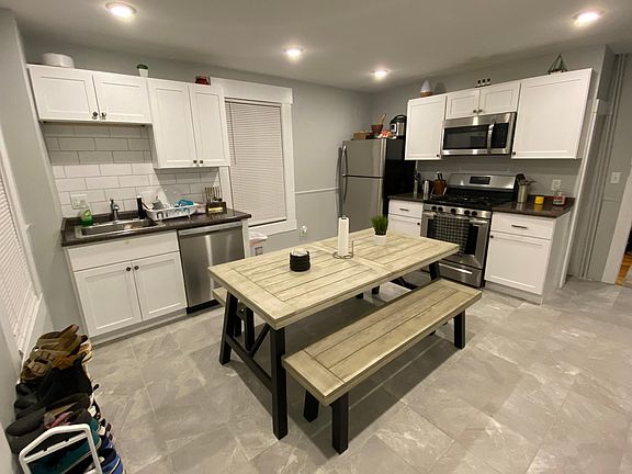 Beautifully renovated 1 Bedroom with large bonus office available for Oct 1st. Large eat-in kitchen, new stainless steel appliances and white shaker cabinets! Recessed lighting throughout. Walking distance to commuter rail, retail shopping, and restaurant. Gas heat and electricity are paid by Tenant. Water is paid by Owner.1 parking space is included in the rent. Coin op laundry in the basement. 12 months