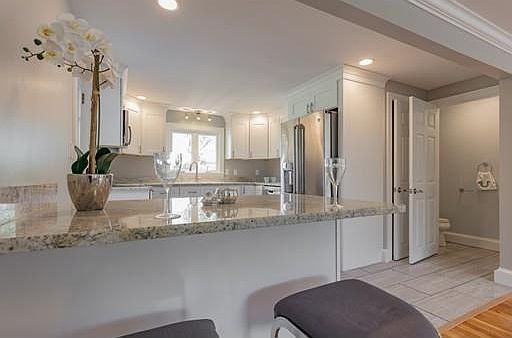 This Newly renovated one level living home in desirable North Reading is situated in a quiet residential neighborhood just across the street from the Hillview Country Club. Brand New Kitchen with Stainless Steel Appliances, Granite counter tops & beautiful Ceramic Tile flooring. From your Granite top Breakfast Bar enjoy the complete open concept living from Dining area through to spacious Living Room. This living space features a Large Bay window, newly trimmed brick Fireplace, recessed lighting and refinished Hardwood flooring. All three Bedrooms also have refinished hardwood flooring. New full bath with granite top vanity, subway tile surround & Ceramic tile flooring. All rooms have just been freshly painted from ceiling to floor. A fresh coat of paint on the walls of the Expansive lower level awaits all your finishing ideas! Brand New Septic System w/ newly seeded large rear yard - New Forced Hot Air Heating System & New 200 Amp Electrical make this home Complete!