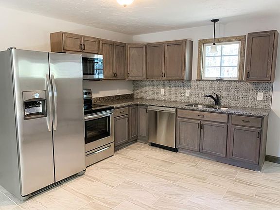 Beautifully renovated home on a quiet dead-end road with large yard and wooded surroundings! Large garage for parking and/or storage, workshop, etc. New stainless steel appliances, new cabinets, and granite countertop. Master bedroom has attached bathroom with walk-in tile shower. Main bathroom features full shower/tub and new tile flooring with washer/dryer hookup. Downstairs also has another washer/dryer hookup! Bonus area downstairs could be completely finished into another room or use for extra storage. Newly renovated features including; siding, roof, heating, plumbing, electrical, and more. Come and see your new home today!