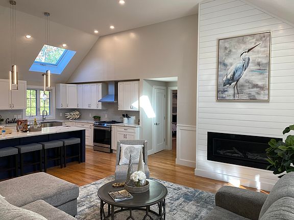 Stunning updates make this home look and feel like New Construction. Renovated from top to bottom, you'll notice all the high end finishes as every inch of this house shines. Enter to Soaring Ceilings that encompass the Open Concept living room, kitchen and dining areas. A generous sized island in the new kitchen will be a wonderful gathering place for friends and family. The gas fireplace makes a great focal point in the relaxing living room, and the dining area spills out to the back patio for wonderful indoor/outdoor living. The large primary bedroom and en suite bath has a tiled shower and soaking tub that makes the space feel like your own spa. 3 bedrooms and 2 baths, plus laundry conveniently all on 1st floor. A good sized bonus room on the second floor gives you plenty of space for guests, a playroom or office. There's also a huge basement for storage, a workshop or an entertainment room. Located in a beautiful neighborhood on over an acre of land, with the outdoor shower, and a two car garage this home truly has it all.