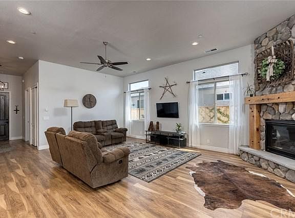 Absolutely stunning home, less than a year old, with owned solar! This home is tucked back on a quiet cul-de-sac off of Cactus Ave, just a short distance from Wildwood/Bidwell Park, shopping and schools. This home has an enormous 3-car garage with carefully thought out features to make it a dream workshop: Epoxy floor, mini split heat/air, not one but TWO 220V outlets, hardwired for data & insulated garage doors. This 4 bedroom, 3 bath home is a split floor plan offering two master suites. You will be 'wowed' as you enter the home to find high ceilings, an open floor plan and a generous amount of natural light. There is laminate flooring throughout the living spaces and bathrooms. The kitchen, which is open to the great room, features beautiful quartz counters and a huge island. There are stainless steel appliances, a farm house sink, gas range and double ovens. A gas fireplace is the focal point of the spacious living area. The master suite has a walk-in closet and a slider out to the patio. The master bath will make you feel like you are at the spa! Two vanity areas, a soaking tub and a walk-in shower with two shower heads. The hall bath also has double sinks and quartz counters. There is inside laundry with lots of storage space. The covered back patio is HUGE and includes ceiling fans a gas plumbing for your BBQ. There is a large chicken coop in the backyard that can stay or go. Hurry and enjoy Chico's remaining summer nights in this gorgeous backyard!