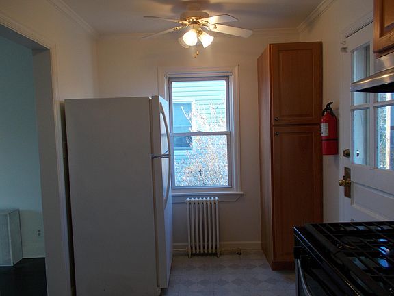 Freshly painted 4 room 2 bedroom on the first floor of 2 family. New kitchen with stainless steel appliances. Newly redone hardwood floors. Tile bath. Master bedroom fits a king size bed. Washer & dryer in the basement with storage. Yard. Street parking. Please call - DO NOT EMAIL. The tenant pays a fee equal to one month rent to Connoisseur Properties. The tenant pays gas and electric and water.