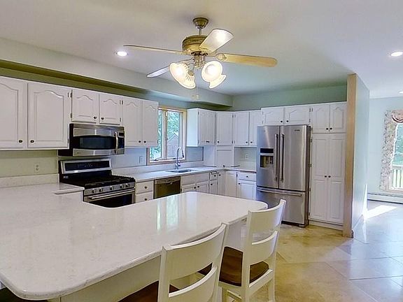 Stunning, renovated center entrance Colonial in a desirable N Billerica locale! Immaculate, spacious multi-level home nestled on a level, nearly 1 acre lot! Featuring over 3,400 sq.ft. of living area, stone foyer, beautiful hardwood flooring, recessed lighting, crown molding, central AC, NEW modern kitchen w/ quartz wrap around island/breakfast bar, new stainless appliances, 3 spacious bedrooms incl private master suite w/ jacuzzi for 2 & seated steam shower, formal DR, exposed wood beamed living room, 2.5 baths, 2nd fl laundry, expansive 3rd floor loft style area w/vaulted ceiling, skylight & walk-out private roof deck, lower level media room, play room, workshop & ample storage. Side deck & patio area perfect for entertaining or relaxing, large level yard, ample parking, newer furnace / electrical /Anderson windows. Detached 24' x 36' 2-car garage with full loft storage area. Amenities just around the corner! Easy access to major Routes! 1.5 miles to N Billerica Comm Rail!