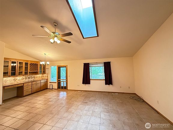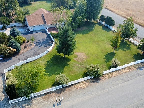 METICULOUS THROUGHOUT describes this 3 bedroom, 2 full bath Home on 1 acre in Primrose Estates near Omak. Quality construction - Living room w/vaulted ceilings & skylight, dining room with unique copper-topped desk/buffet, kitchen with granite counters & all appliances. Tiled entry, laminate & tile flooring throughout. Primary bed/bath suite with soaking tub, double sinks, separate shower, huge walk-in closet. Covered composite back deck, vinyl-fenced yard front & back, sprinkler system, OID irrigation. Attached 2-car garage PLUS workshop/storage building, insulated with power. Park-like landscaping, paved circular drive. $439,000 H-3709/MLS2428349