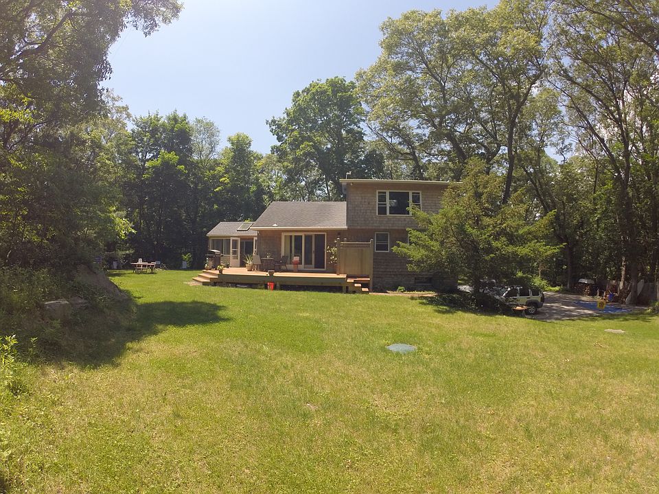 This lovely home is located less than 1/2 mile to historic Wickford Village. Situated on a private lot just over 1.5 acres, you'll love entertaining on the spacious cedar deck, walking home from the beach and using the outdoor shower, or relaxing in your 8 foot by 8 foot hot tub. In the interior you'll find an updated kitchen with corian counter tops, soft close kitchen cabinets, an oversized farm sink, a Jenn Air Downdraft cook top, and a butcher block island. The kitchen is open to the living room with a wood stove great for cold winter nights. The three season porch extends the living area and leads out to the deck and yard, great for entertaining. The master suite boasts cork flooring and the master bath has stone flooring, double glass panel door and vertical grain cedar ceiling. Two more bedrooms and another updated bathroom plus a large finished basement makes a great game room or den. Other features include cedar shake shingles on the exterior, a one car garage, American cherry hardwood floors on the first floor, open cell blown in insulation throughout the walls and ceilings. This is a great property, don't miss out on this well-maintained gem!
