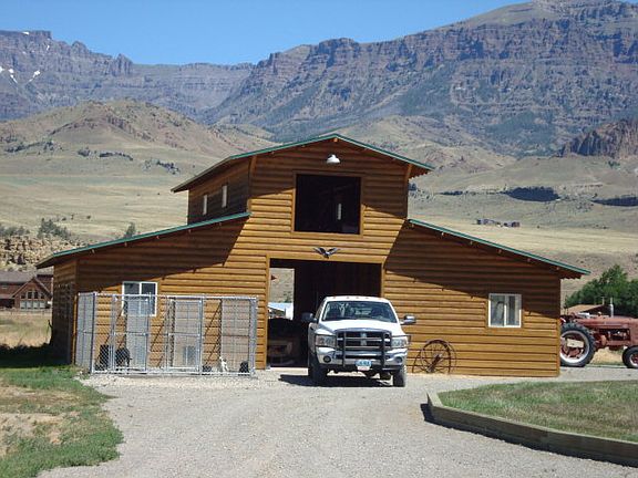 Surround yourself with 360 degree mountain views in the Wapiti Valley and enjoy the warmth of this family-size log home. Set on almost 5 irrigated acres this property includes horse facilities, abundant wildlife and easy access to Cody and Yellowstone National Park. The open floor plan offers easy flow for family, friends and entertaining. Fireplace, hardwood floors and much more. Easy to see.