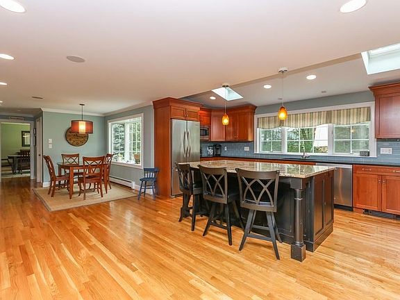 This is the perfect family home! Beautifully sited on a private corner lot, this spacious 4 bedroom, 2.5 bath Colonial welcomes you with a fresh and bright decor throughout. The two story foyer opens to a sunny living room on one side and home office with French doors on the other. From the entry the home's open floor plan flows easily into the kitchen with granite counters, stainless steel appliances, island with breakfast bar and separate eating area, leading into the cozy family room with fireplace, large windows and accentuated by built-in cabinets and shelves, all with hardwood floors throughout. The second floor features a master bedroom ensuite, 3 additional good sized bedrooms and a full bath. The huge lower level offers separate spaces for multiple family interests with room for exercise equipment, game tables, arts and crafts, or just relaxing in a comfortable nook.