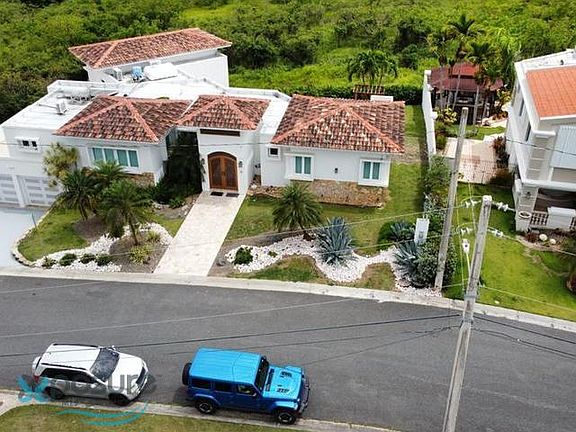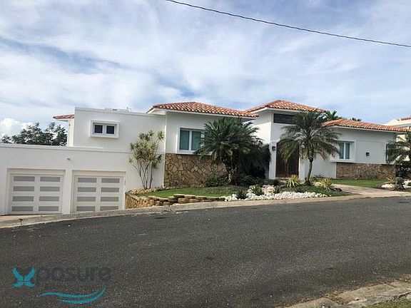Awesome modern house custom built in reinforced cement Spanish tiles roof. Aprox. Total of GLA of 3,825 sqft 518 sqft garage. Designed and built following the natural contour of the land. On first level foyer, living area, modern kitchen with granite countertops, skylight, and three comfortable bedrooms with air conditioning units each and two and half bathrooms. Downstairs master with enter bathroom, and walking closet, with central air conditioning. Laundry. Double Garage .Second half bath in patio. cameras. Solar heater. Water cistern (600 gls) irrigation system, well kept gardens. Diesel Generator of 20k. (18.0415796) (-67.1833506)..
