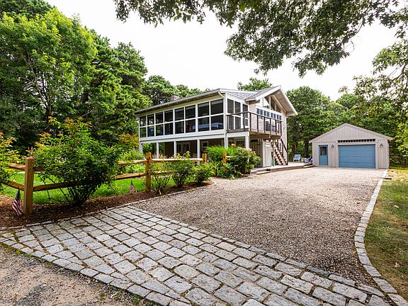 Quintessential Cape Cod beach house in Eastham's sought-after Massassoit Hills Association, a private enclave of sandy lanes and west-facing association beaches offering spectacular sunsets and protected swimming in the warm waters of Cape Cod Bay. 2 Quason Ct occupies a large, beautiful corner lot on one of the association's quiet side streets, where traffic mostly consists of dog walkers, families pulling beach wagons and couples heading for sunset with a bottle of wine. A colorful irrigated perennial garden and naturally landscaped yard evoke the ambience of Old Cape Cod. The wraparound mahogany deck with porch swing and outdoor shower connects the oversized 1-car garage, ideal for bikes and paddle boards. Living spaces are bright and airy with beamed, vaulted ceilings and windows galore. The living room with raised hearth fireplace opens onto the classic 32' screened porch. The granite & stainless kitchen offers superb space and a charming built-in dining nook. Main level primary bedroom, 3 guest bedrooms, gas heat, ductless ac. The home is meticulously maintained inside and out. Artfully decorated and available tastefully furnished. A well-loved Cape getaway for all seasons. Interior Photos Coming Soon,