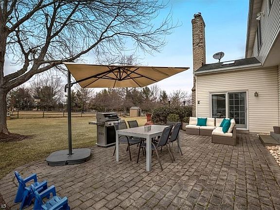 UPDATED LAZY BROOK ESTATES COLONIAL IN READINGTON TWP. Beautifully updated throughout, a stunning custom Colonial is sited on just over an acre of level, landscaped property in Readington Township’s sought-after Lazy Brook Estates. A sun-splashed open floor plan of 3,492 sq ft presents four bedrooms, two-and-one-half baths and an attached, oversized, finished three-car garage. Outside, a full-length covered mahogany front porch and spacious rear paver patio overlook bucolic countryside views. Highlights of the gracious eleven-room interior such as gleaming hardwood floors, a wood-burning masonry fireplace, traditional moldings, high ceilings, designer paint colors, built-ins, skylights and recessed lighting are among the fine amenities. Additional living space is located in the stylish finished basement which offers recreation, exercise and play areas A landscaped brick paver walkway leads to the welcoming covered front porch entrance to this impressive Colonial. Enjoy warm weather entertaining on the rear paver patio amid level, professionally landscaped grounds enhanced by a classic split rail fence along the property’s perimeter. Pride of ownership is evident throughout this remarkable Nest® Smart Home high efficiency residence, neutrally decorated extensively updated.